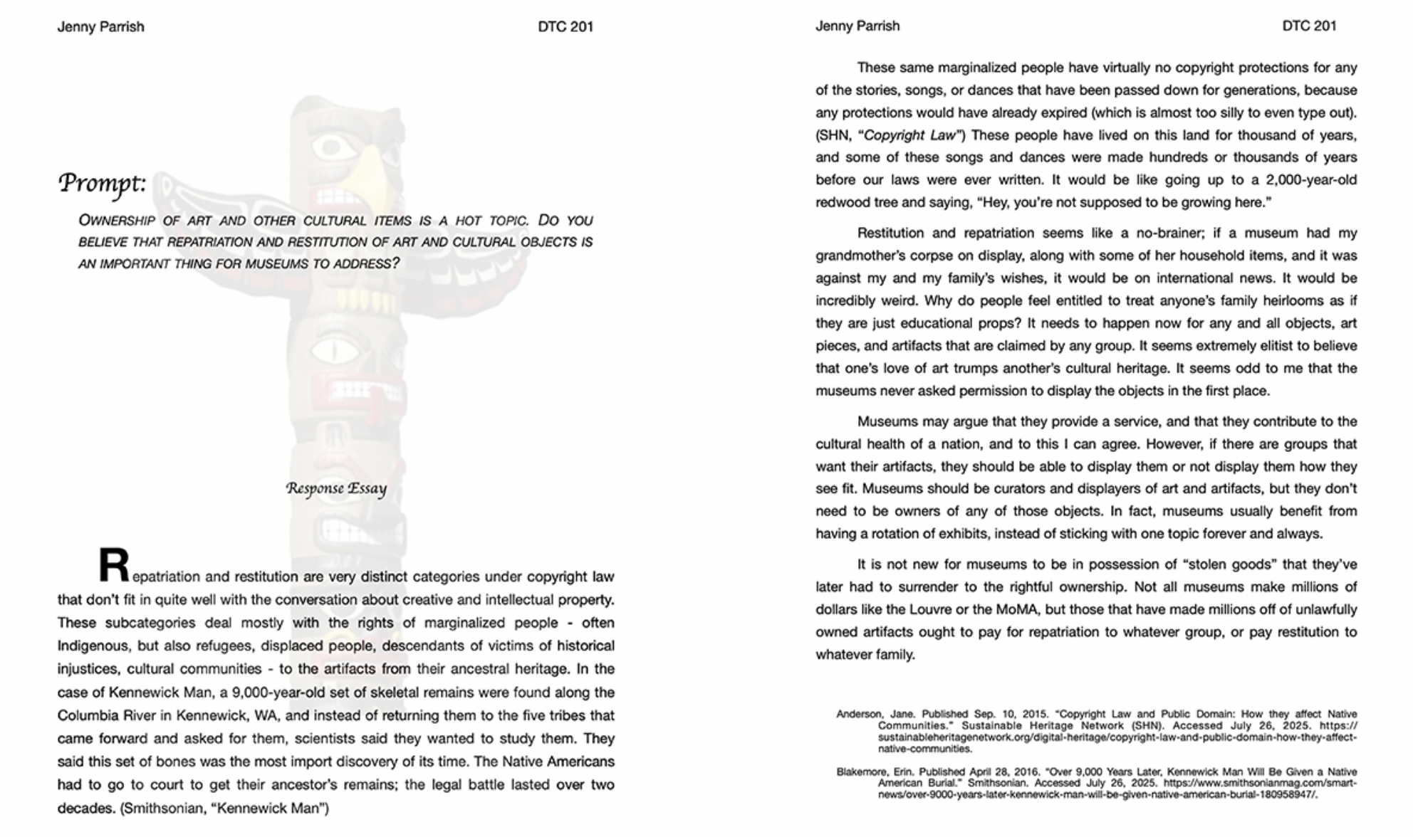 The following is a collection of Jenny's writings from her coursework studying sociology, digital technology and culture.